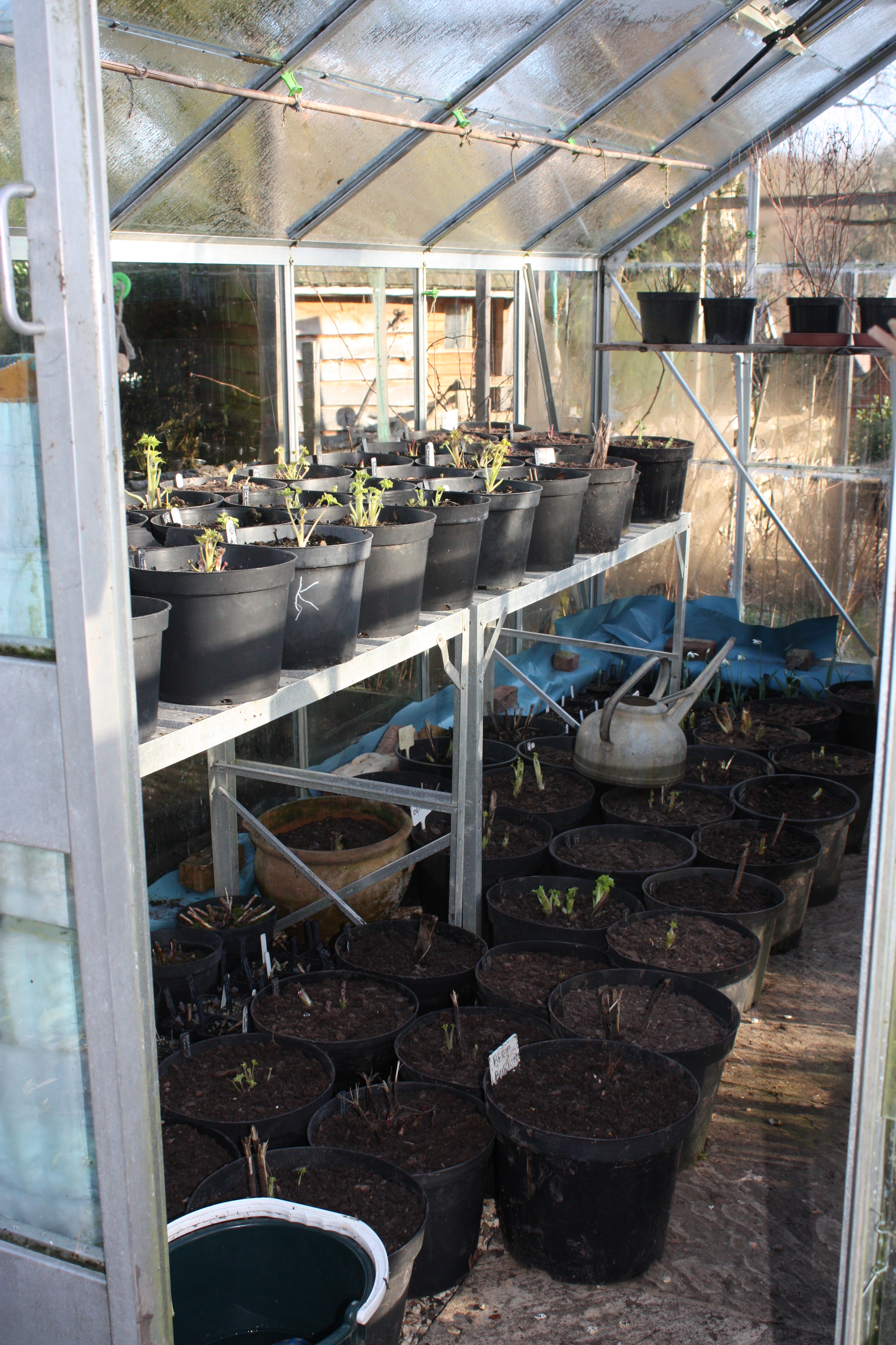 Here’s a shot of the plants dug in outside the greenhouse. Usual early flowering suspects – ‘Ailsa’, ‘Spindrift’, ‘Gossamer’, ‘Summerfield Ariane’, ‘Rona’, ‘Darling Sue’.